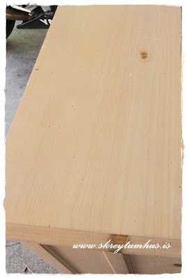 Skref 6 – Síðan fór ég sandpappír yfir ákveðin svæði til þess að fá slitáferð á borðið.