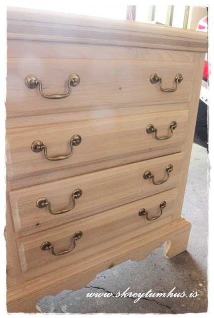 Ég vissi að ég vildi svona massíva kommóðu.  Liturinn skipti ekki höfuðmáli því að ég var ákveðin í að mála hana.  Síðan var það einn góðan veðurdag að sól skein í heiði og fuglarnir sungu, himnarnir opnuðust og breytingarengillinn sendi réttu kommóðuna til mín í Daz Gutez…