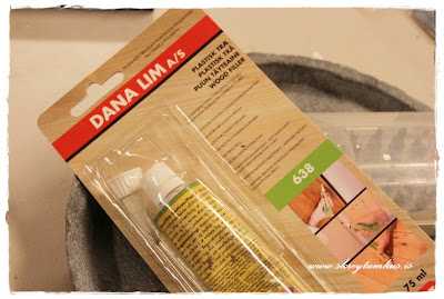 …Skref 4 – síðan keyptum við uppfyllingarefni fyrir götin, og settum í eina umferð, létum þorna.  Daginn eftir þá settum við aðra, og svo var pússað yfir með sandpappír til þess að fá slétta og jafna áferð..
