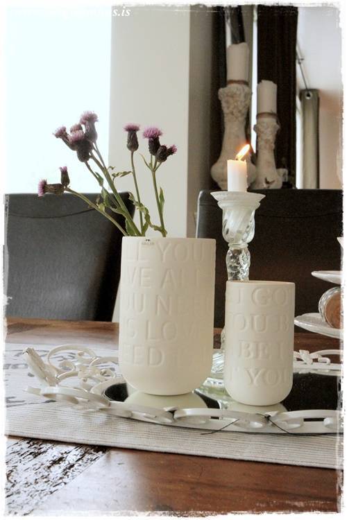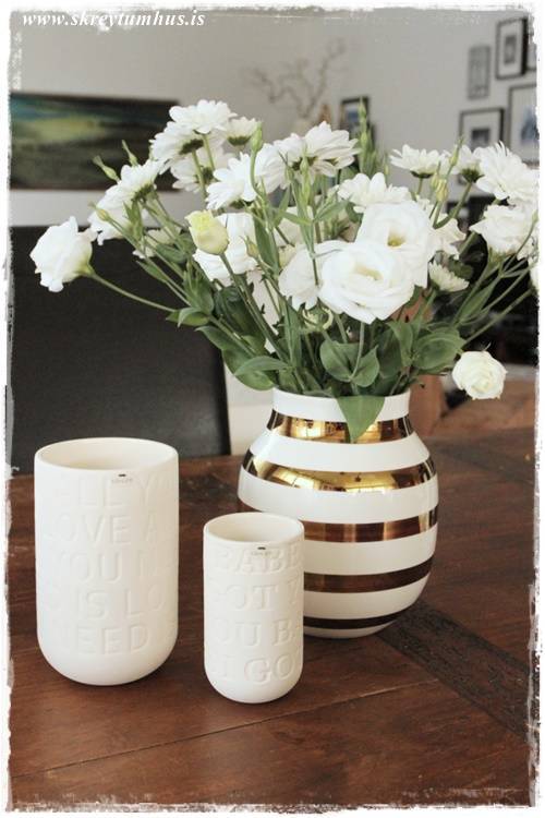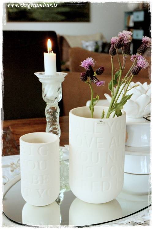 …það fyndna er síðan að ég var að setja upp skilti, við hliðina á skápnum, núna um helgina sem minnti mig á, að ég var aldei búin að sýna vasana fallegu…