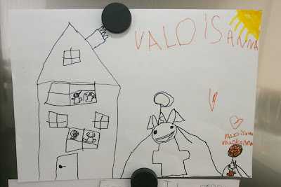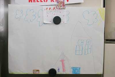 hér er farið í gegnum og valið úr og það sem er ákveðið að eiga er sett í plastvasa (merki alltaf dagsetningar og líka ef myndirnar heita eitthvað ákveðið hjá listamanninum). Plastvasana er ég svo með í möppu. Við erum líka með segultöflu í eldhúsinu þar sem listaverk fara oft á og er skipt út reglulega og þá enda þau sem hafa verið á töflunni í plastvasa og möppu. En hér eru teknar tarnir og teiknaðar 20 myndir af því sama oft og þá fer það besta í möppuna en hitt í ruslið. Ef það væri ekki gert, myndum við kafna fljótt úr blöðum með myndum á hehehhe