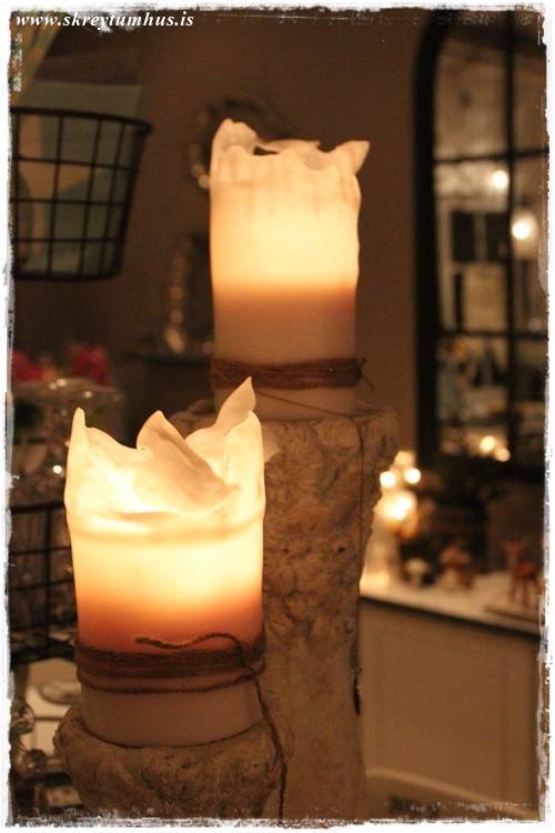 Mennir okkar eru sem sagt þjáningabræður! Einhverntímann þegar ég fór til höfuðborgarinnar þá spurði ég hann hvort það væri eitthvað sem ég gæti gert fyrir hann. Hann svaraði: Já…ekki kaupa meira undir kerti 😉 Gott að fá þessa hugmynd að það sé hægt að nota hvað sem er fyrir kertastjaka 😀
