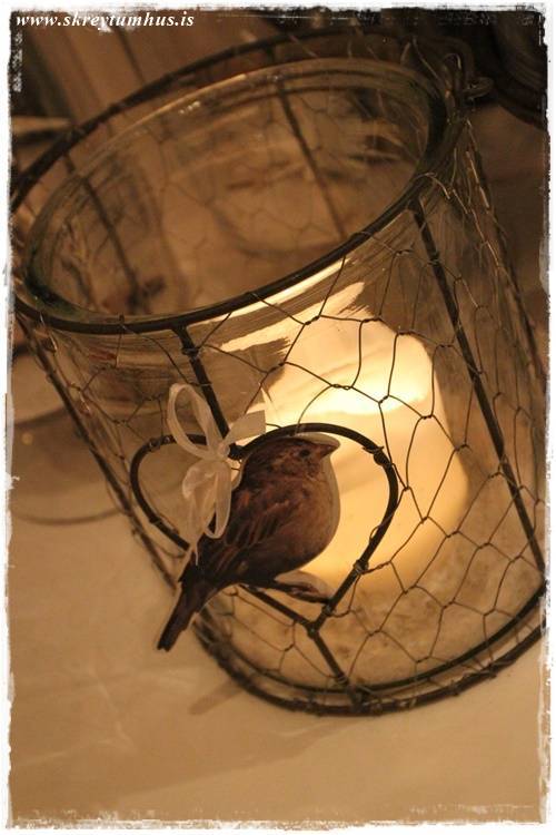 …og kertaljós í luktinni minni, sem er enn með yndislega fuglinum á…