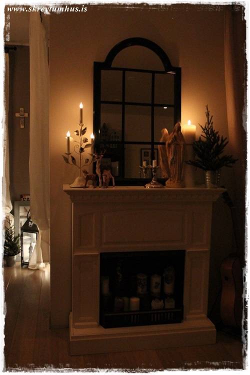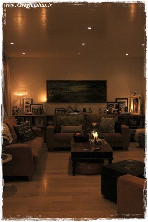 …og auðvitað eru kertaljós á nýju hillunni í stofunni okkar…