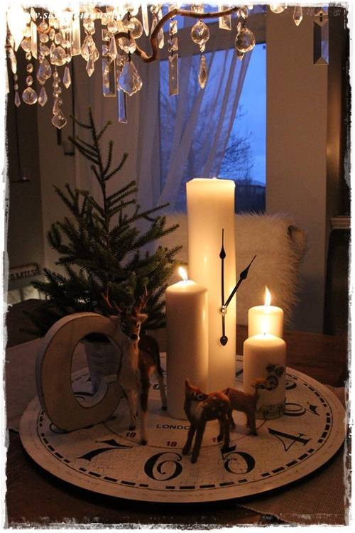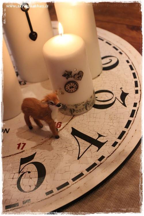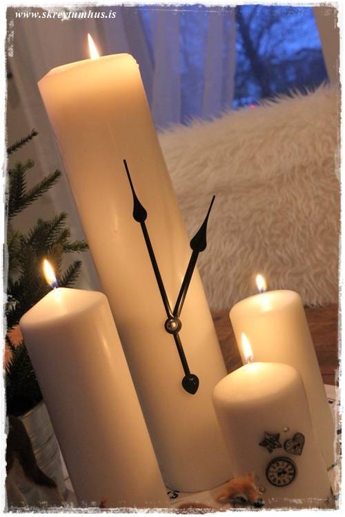 Þetta er æði, klukkan á kertinu skreytingin væri toppurinn á gamlárskvöld sem borðskreyting. Hlakka til að koma á morgun.