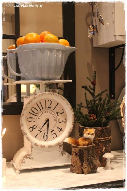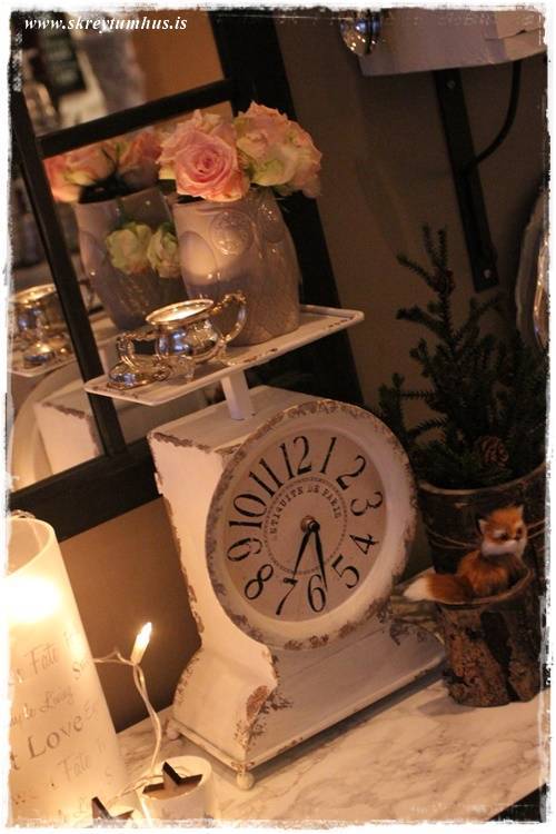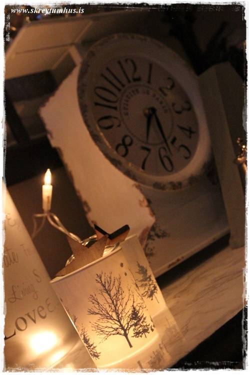 Æðisleg hugmynd með klukkuna, takk fyrir. Hvar fékkstu litla jólatréð, er þetta gerfi tré úr Ikea kannski? Mig langar svo í svona lítið lifandi tré 🙂