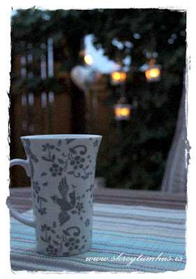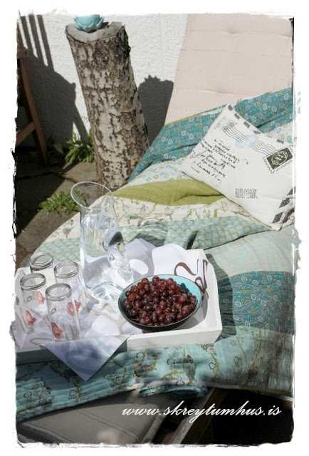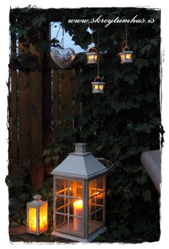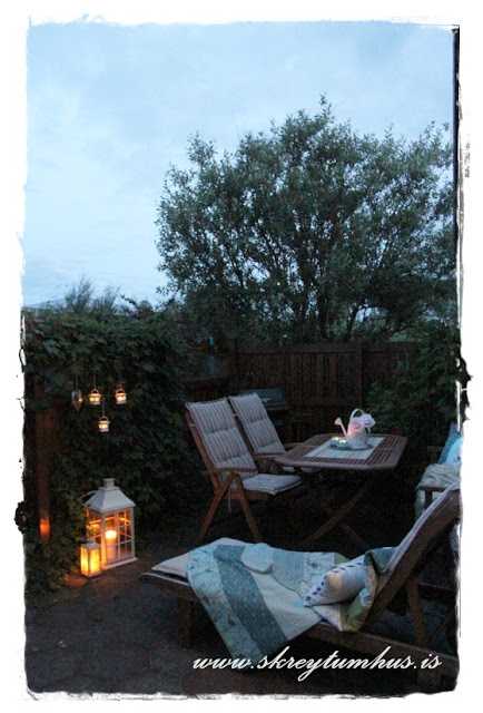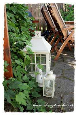 Þetta er dásamlegt hjá þér og hvað þú getur nostrað við og gert huggó hjá þér… svo æðislegt. Nú er ég farin að gróðursetja svona vafningsvið á pallinn hjá mér. og svei mér þá ég held ég fari bara út með teppi og kertaluktir í kvöld.