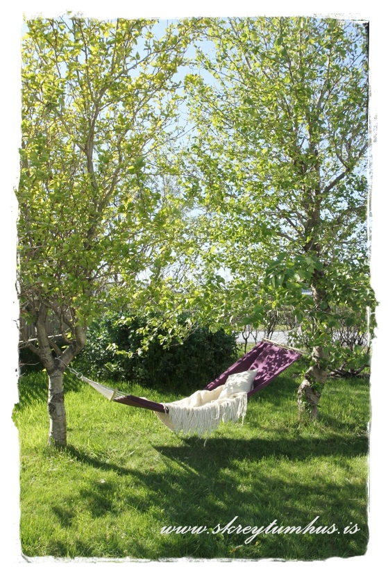 Nú á bakvið hús er hengirúmið enn á sínum stað…