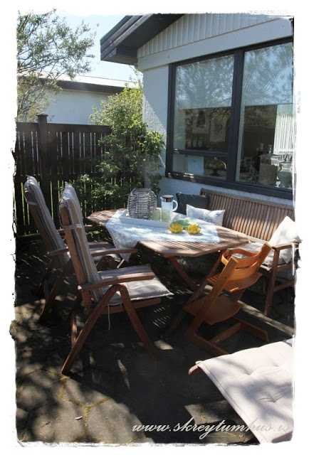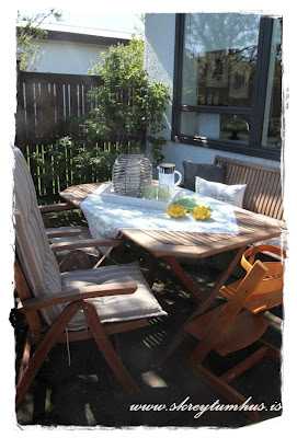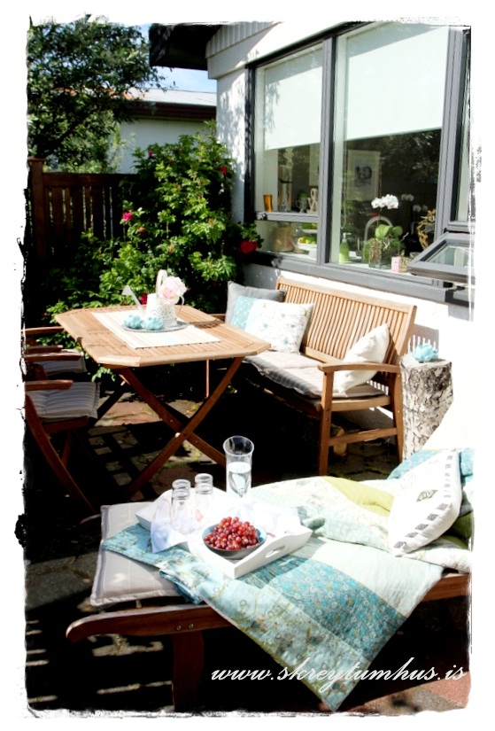 Dúllan hún Stína Sæm, sem er með bloggið Svo margt fallegt, bauð í bloggpartý þar sem maður átti að deila myndum af útiaðstöðunni sinni. Ég hafði áður birt þessar myndir hérna, en eins og sönn dama, þá lætur maður ekki grípa sig tvisvar í sama kjólnum (*hóst* yeah right)…