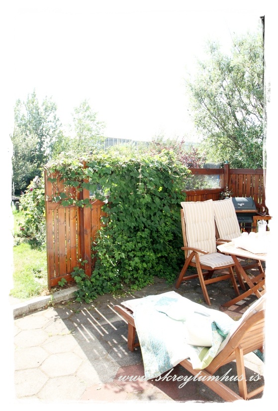 Það er annars ótrúlega kósý að hafa einhvern svona stað til þess að vera á utandyra. Við bjuggum áður í blokk og þar var enginn staður til að vera úti, nema bara á grasinu fyrir allra augum – hér er maður í eigin heimi og það er bara notalegt…