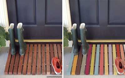 Hér er t.d. skemmtileg og glaðleg lausn á útidyramottu..