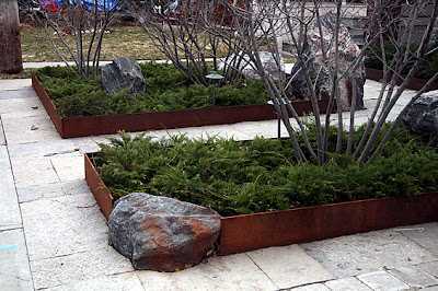 …ryðgað járn sem afmarkar beðin…