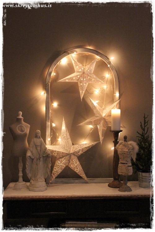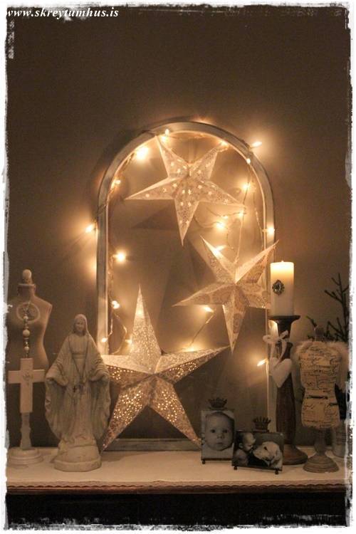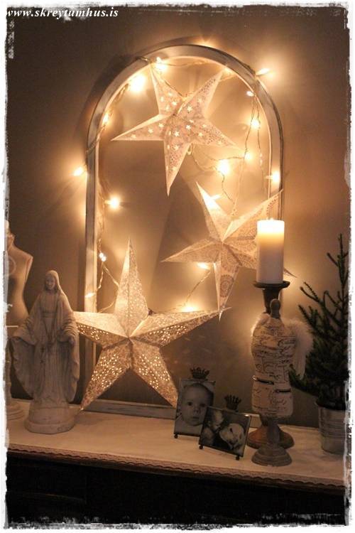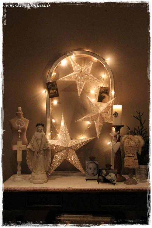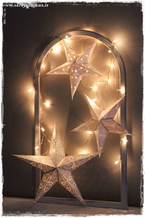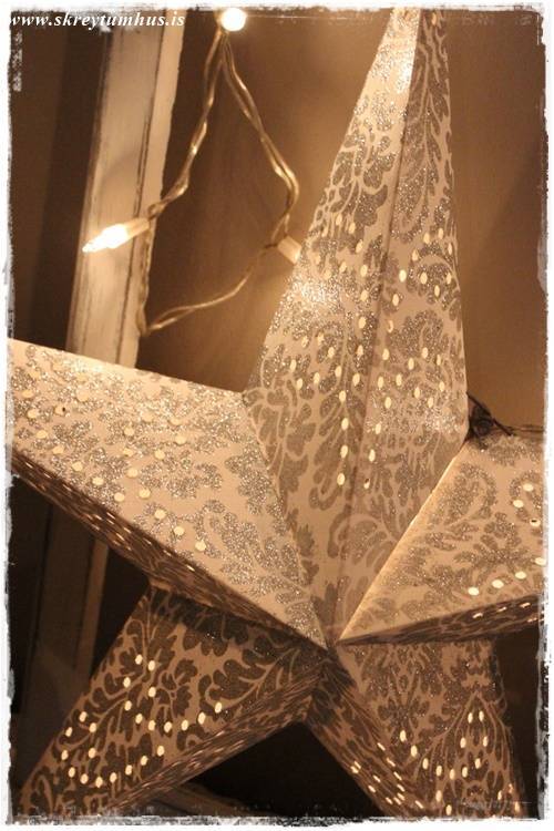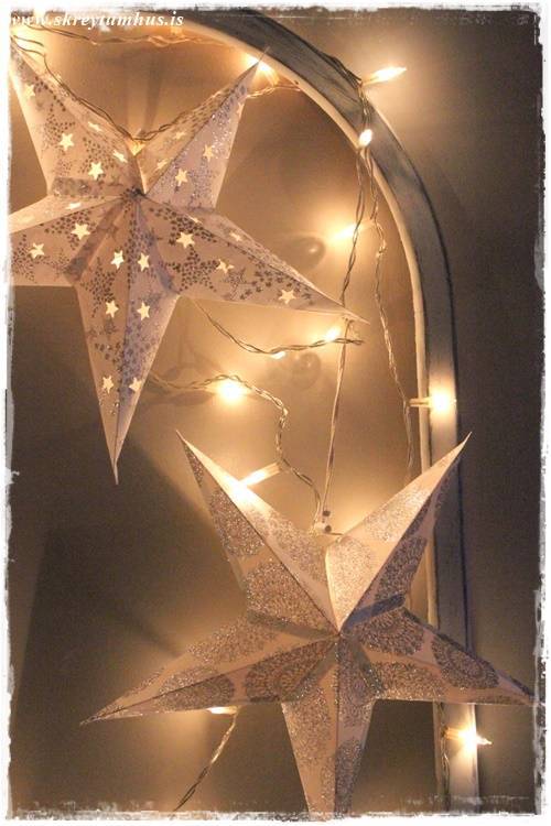 Eins og þið vitið þá var SkreytumHúsKvöld í Rúmfó í seinustu viku, þegar að ég gekk um búðina að velja vörur á tilboð þá kolféll ég fyrir, með skelli og látum, dásemdar pappastjörnum. Ég á þónokkrar nú þegar, en hins vegar taka þær svo lítið pláss þegar þeim er pakkað niður – og kostuðu nánast ekki neitt, þannig að hvernig á að vera hægt að standast svona?