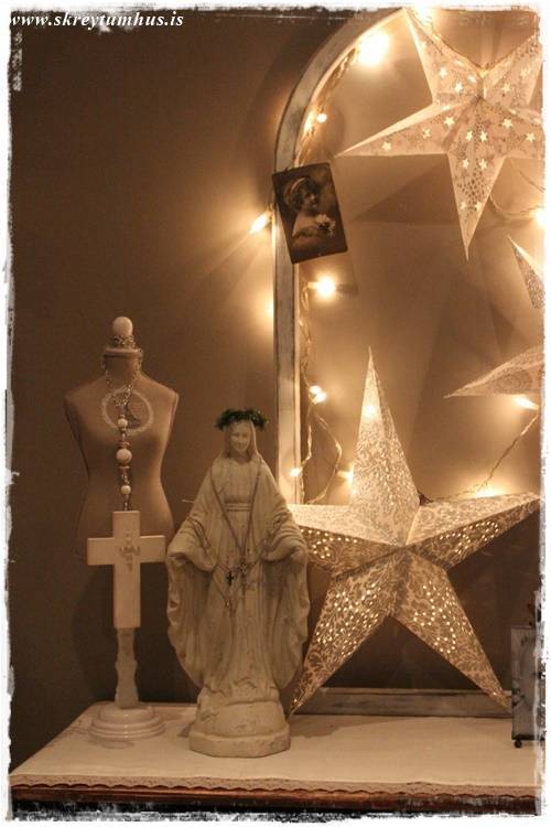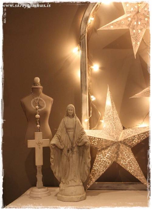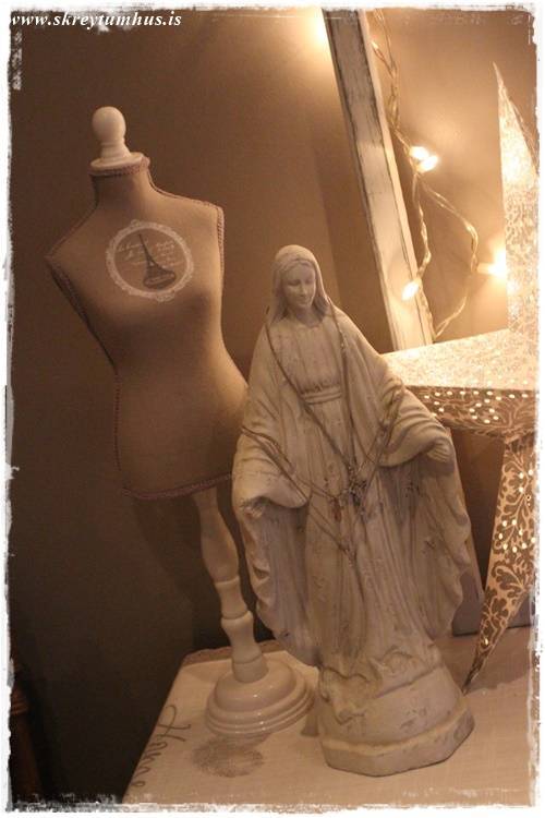 …ég notaði fallegu gínuna úr Rúmfó, og styttuna sem ég fékk mæðradagsgjöf…