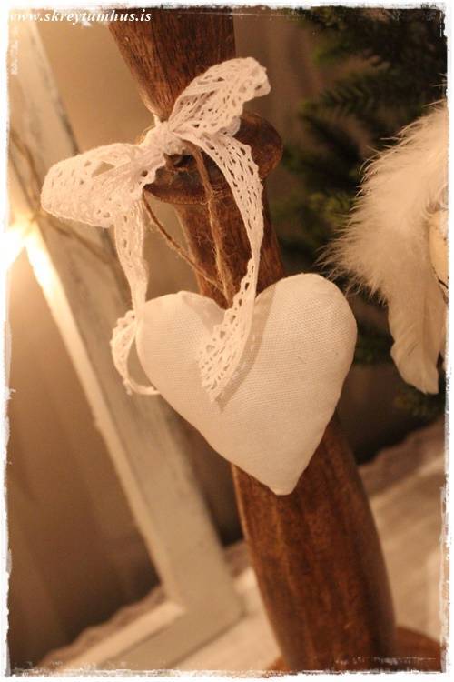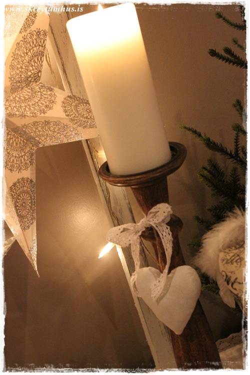 …og festi á stjakann með blúndu einfalt hjarta sem ég fékk í A4 í Smáralindinni. Planið er reyndar að gera eitthvað sniðugt við það, að skreyta á einhvern hátt – en í bili, þá smellpassaði það þarna – einmitt svona einfalt…