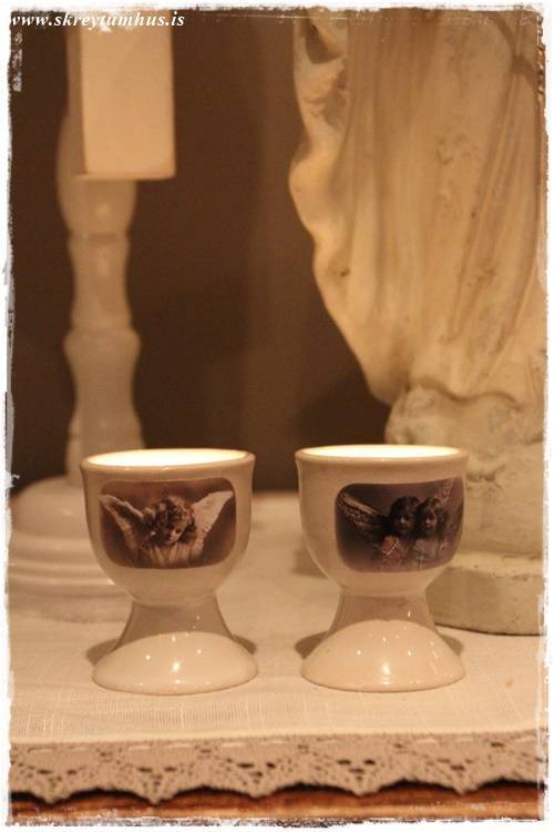 …í litlu eggjabikarana sem ég skreytti endur fyrir löngu (sjá hér)…