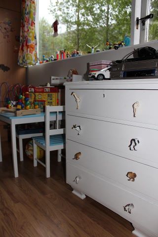 Vantaði svo nýjar höldur á kommóðu í barnaherbergið og datt í hug að nota eitthvað sem til var heima 😉