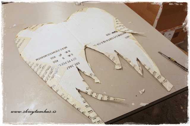 5.  Þegar að allt var þornað þá sneri ég vænginum við og snyrti til pappírinn…