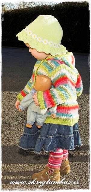 Þá varð til þess að mér varð hugsað til hattanna sem hún dóttir mín notaði svo mikið þegar að hún var lítil.  Yndið hún tengdamamma mín heklaði fyrir mig hatta í alls konar fallegum litum…