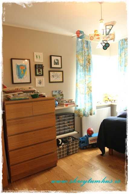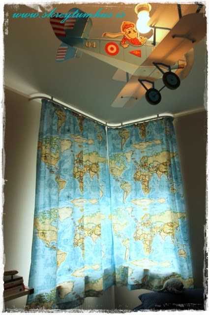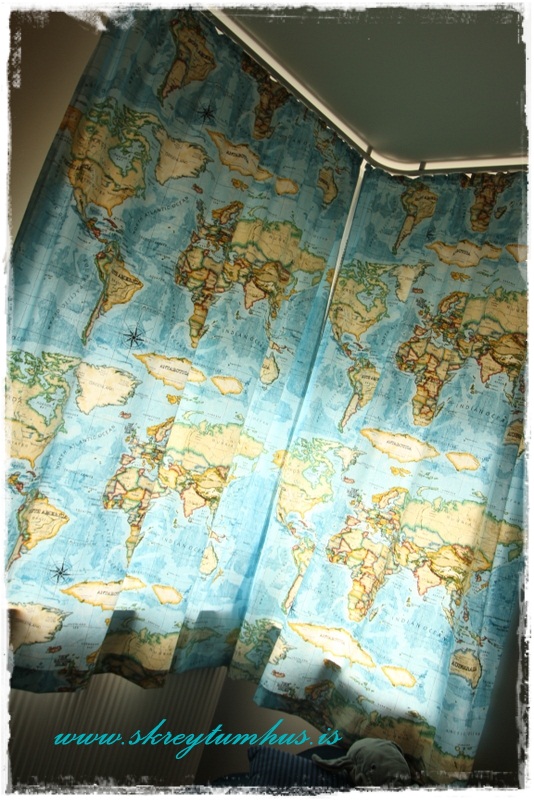 Æðislega flott herbergi og ég er alveg ástfangin af þessum gardínum, alveg elska svona heimskortaþema 🙂 Þetta gauraherbergi kemur sko vel út og svo flottar lausnir hjá þér 🙂