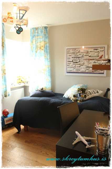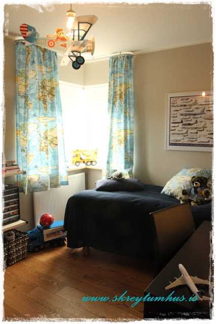 Glæsilegt! Frábærlega skemmtilegt strákaherbergi með skemmtilegu þema… æði þessar gardínur.