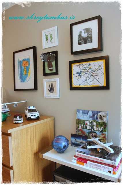 …að sjálfsögðu var búin til myndagrúbba úr fallegum listaverkum herbergiseigandans…