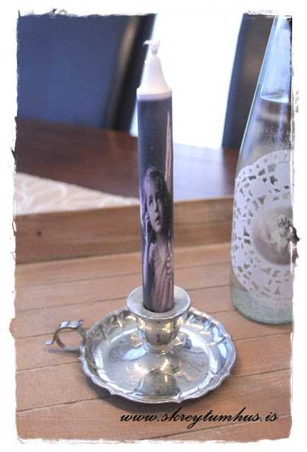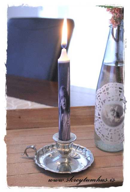 Þá eru komin falleg skrautkerti, en það má EKKI kveikja á þeim – þá gerist þetta, það kveiknar í pappírinum!!