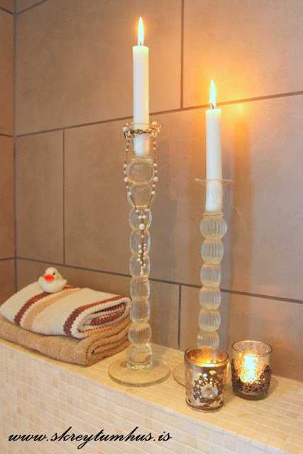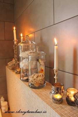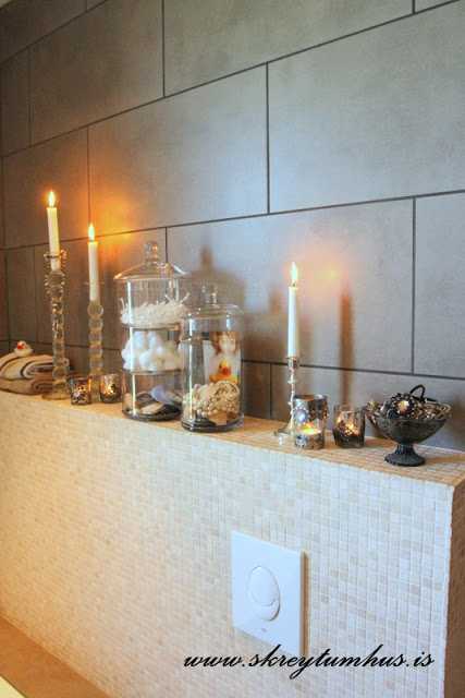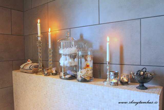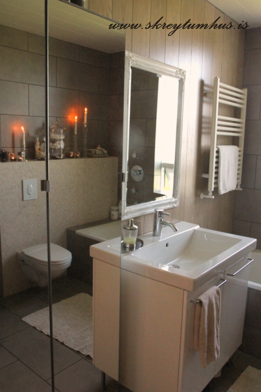 Ótrulega fallegt hjá þér. Ég væri alveg til í að hafa smá hillu til að skreyta inn á mínu baði;)