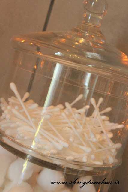 …og pakki af eyrnapinnum úr Bónus (passaði að hafa þá hvíta en ekki bláa eða svoleiðis 😉 – þannig að skreytingarfylliefni kostaði undir 500kr og er allt saman nýtanlegt, ekki amalegt það!