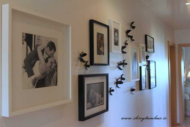 Pé ess. ég er að ELSKA myndavegginn þinn. Er einmitt búin að vera að pæla í því núna í *öhömm* *hóst-tvö* *hóst-ÁR* hvernig ég ætti að hafa ganginn minn (veggina). Stundum bara pælir maður OF mikið! 😉