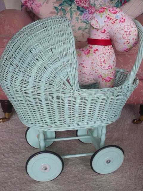 Dúkkuvagninn er væntanlega úr tré eða basti? Ég hugsa að ég myndi spreyja hann bara og ég myndi svo sannarlega spreyja smádótahilluna en ekki reyna að mála hana. Hugsanlega strjúka létt yfir með fínum sandpappír til að fá góðan grunn. Ef þú ert að spreyja þá er málið að hafa hendina stöðugt á hreyfingu þegar spreyjað er, frekar fleiri umferðir og léttari.