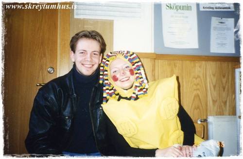 Með skólanum vann ég á kvöldin og um helgar í Eymundsson-versluninni sem þá var við Hlemm.  Vinkona mín, sem vann með mér, átti kærasta og eitt kvöldið í október kom hann snemma að sækja hana í vinnuna.  Með honum í för var besti vinur hans, strákur sem var svo agalega sætur að ég fékk bara í hnén – og 20 árum seinna hef ég ekki enn jafnað mig (spurning um að láta lækni kíkja á þetta).