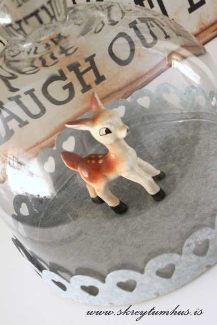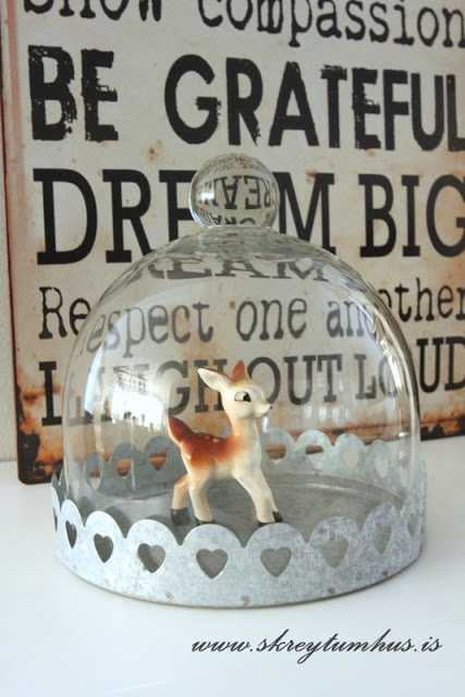 Ég notaði náttúrulega skiltið mitt fína sem byrjunarpunkt í þessari uppröðun og þar sem að það er svona hátt þá setti ég bara lítill gegnsæann kúpul fyrir framan…