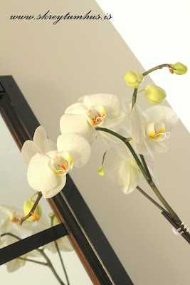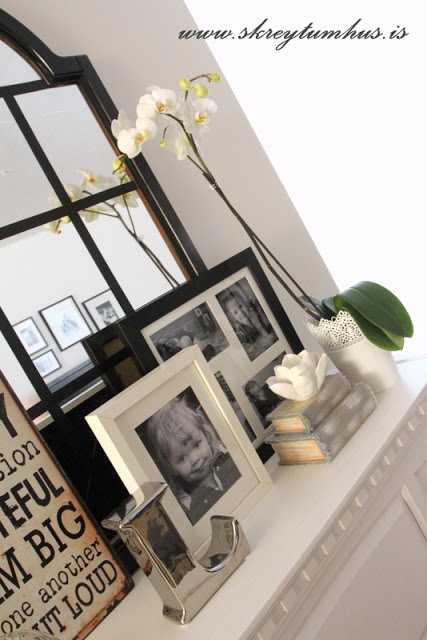 Restin er svo bara fastir liðir eins og venjulega, myndarammar og orkídea, ásamt geymslubókunum og blómakertastjaka…