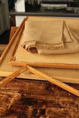 …húsfreyjan átti restar af svona flekagardínu úr Ikea og við ákváðum að nota hana innan í rammana ofan á korkinn. Við vildum bara eitthvað hlutlaust efni sem myndi tóna vel við annað sem við völdum inn í rýmið og þetta hentaði svo vel…