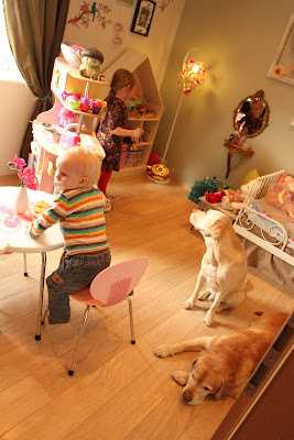 …allt að gerast, krakkar að leik og hundar á gólfi – svona eiga barnaherbergi að vera!