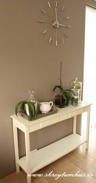 Like á krukkuna og orkideurnar! 🙂 og hlakka til að sjá hvernig sæta hliðarborðið kemur út (er veik fyrir svona hliðarborðum!)