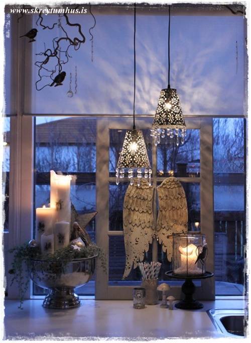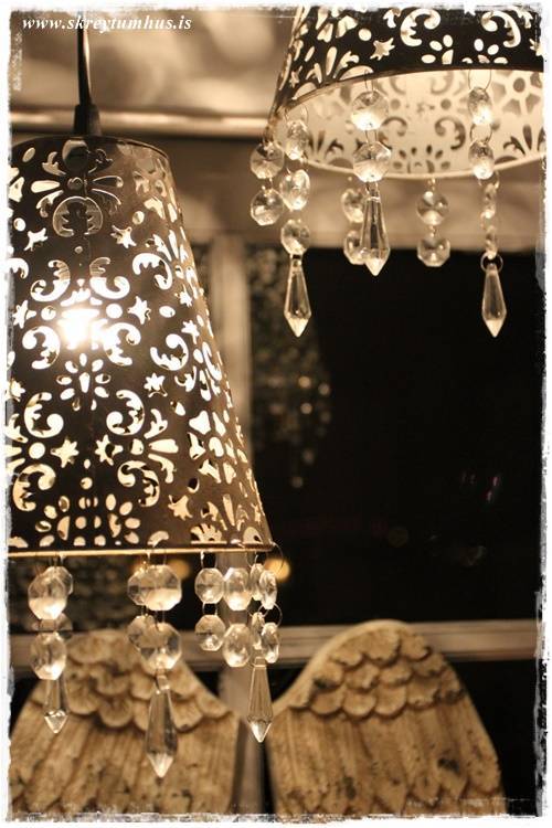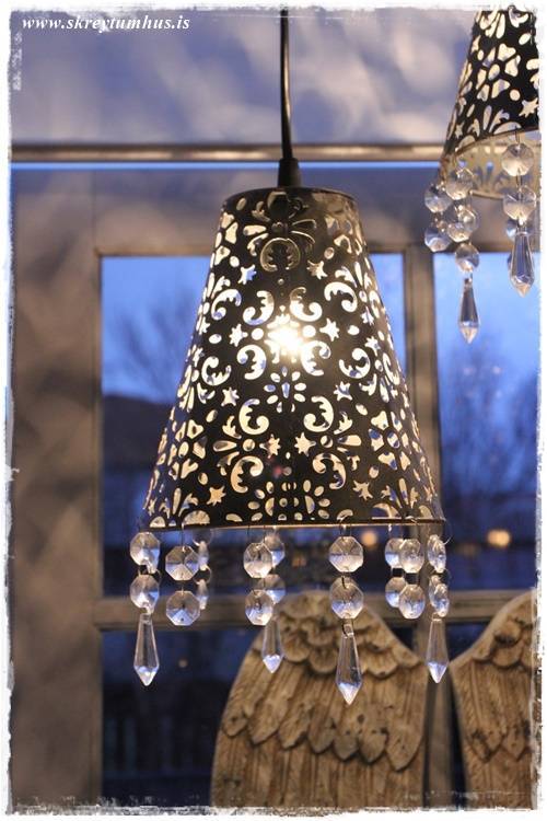 Æ hvað smá bling gerir heiminn betri 😉 Flott að hengja svoleiðis í ljósin…þessi göt biðja nú bara næstum því um að láta hengja bling í sig 😉