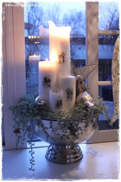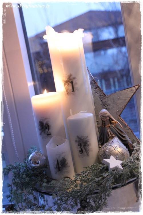Er ég byrjuð að brenna aðventuljósin? Í fyrsta lagi þurfti ég að nota þessi kerti í myndatöku og var búin að kveikja á þeim, svona er ég nýtin, í annan stað – hefuru séð stærðina á þessu kerti. Ég hefði getað byrjað að brenna það á seinstu jólum og það myndi ekki sjást högg á vatni!:)