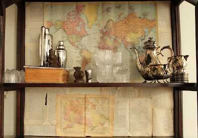 Vá hvað mig langar í svona kort og kortin úr bókinni er algjörlega gordjös, mér finst snilld að nota þetta svona. Helst myndi ég nú bara líma þetta endanlega í (já og sjálfsagt myndi ég bara mála allann skápinn og gera gamlann í stíl við rifnar og gamlar blaðsíðurnar) En það þætti líklega flestum algjör synd og skömm haha. Ótrúlegt hvað allt breytist í skápnum (og það er alltaf svo gaman)