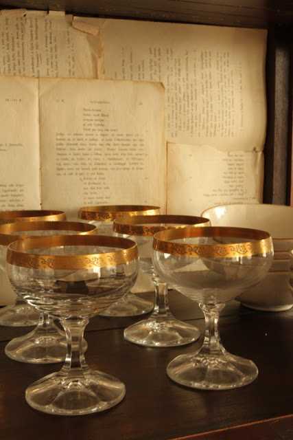 …kampavínskristalsglösin sem að mamma og pabbi fengu í trúlofunargjöf fyrir rúmum 50 árum, með gyllingu og látum 🙂
