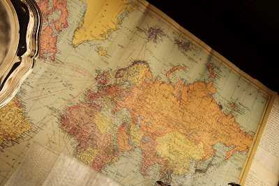 Það var af nægu að taka en ég valdi að sjálfsögðu gamaldagsheimskort, eins og þetta hér.