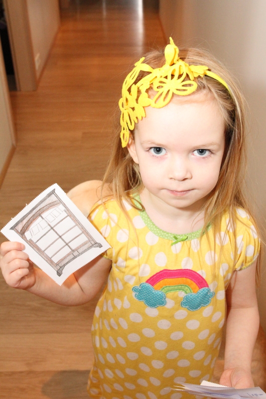 …við teiknum myndir af hlutum innan heimilisins sem leiða mann að næsta hlut/stað, þar til eggin finnast…