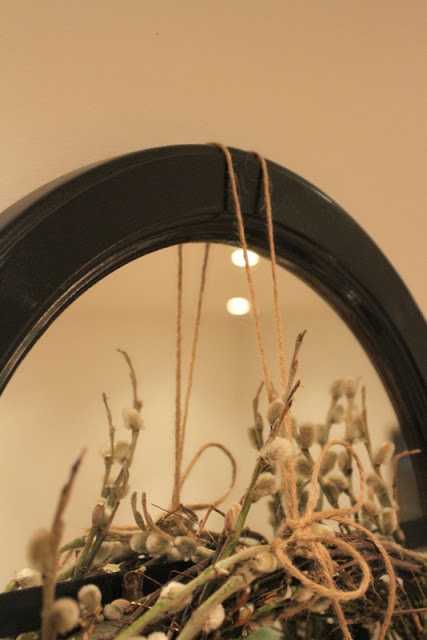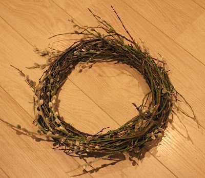 Þetta er afar einfalt að gera og það eina sem þarf er bara blómavír og síðan þær greinar sem þú vilt hafa í kransinum. Ég valdi nokkrar sem voru grænar og með brumi á, svona til að hafa kransinn vorlegri.