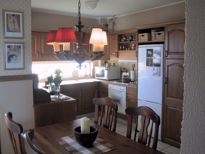 Já sæll fröken – þetta er ekkert smá huggulegt hjá þér!  Takið svo eftir bláum pottum og katli í stíl – þetta er alveg úthugsað.