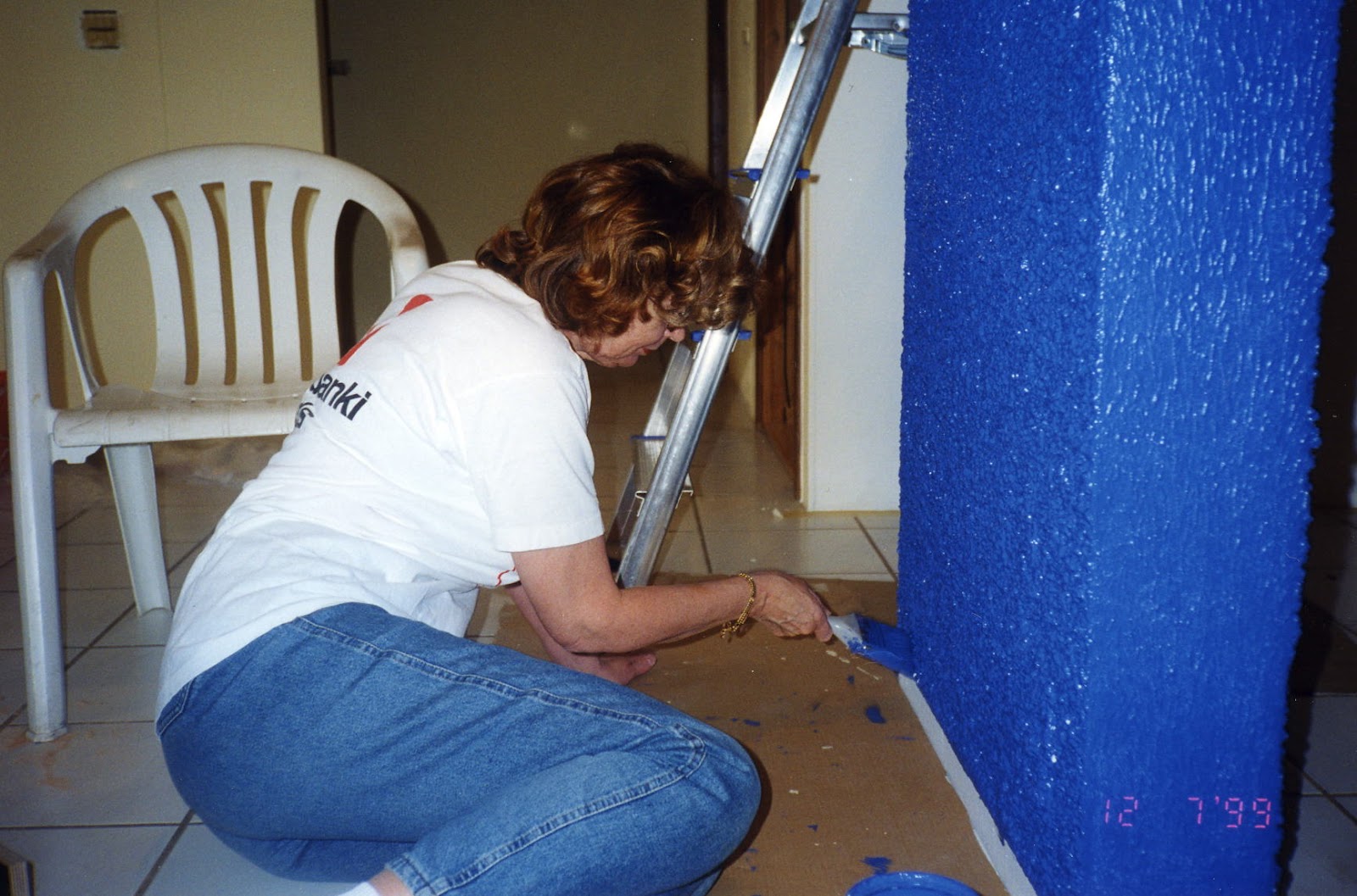 …en núna eru alvöru framkvæmdir að fara af stað, og mér til varnaðar þá held ég að bláa skeiðið hafi bara þurft að fá að koma og fara.  Ég vildi alltaf mála í sterkum lit heima hjá mömmu og pabba en gat það ekki – þá hefði ég skemmt plastpanilinn skiljiði.  Þannig að þetta þurfti að gerast 🙂