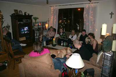 …hunsið the party people og kíkkið á ljósaseríuna á bakvið gluggatjöldin, og svo er bara fyndið að sjá að stofan er eins og hringekja. Sófarnir og allt innvolsið voru á sífelldri hreyfingu.