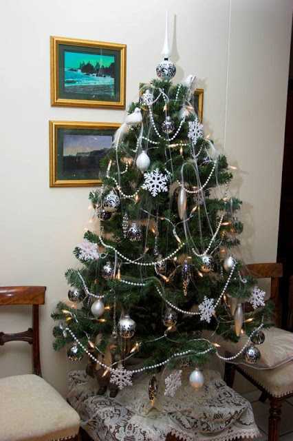 þannig var hægt að hengja skraut og hvíta ljósaseríu á hana – kom vel út!