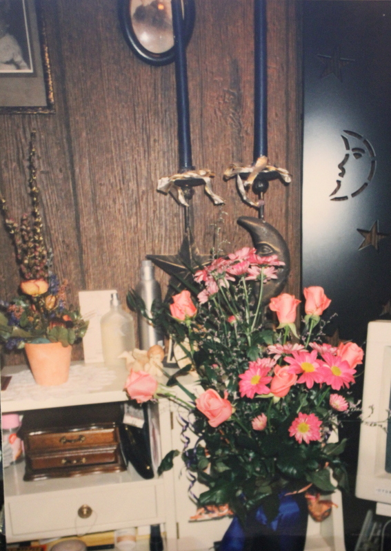 …allt voða mikið Sun Moon Stars og antík í bland, gamlar ljósmyndir af mömmu þarna á veggnum og prentarahillan góða.   Svo auðvitað CK one ilmvatnið frá Calvin Klein á skattholinu – ahhhh 1996.