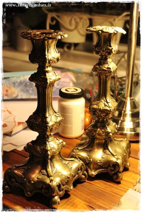 Virkilega fallegir stjakar, eins voru þeir virkilega fallegir gullitaðir, en segðu mér hvernig voru þeir skakkir (sést ekki á myndunum) og hvernig réttir þú þá af ?